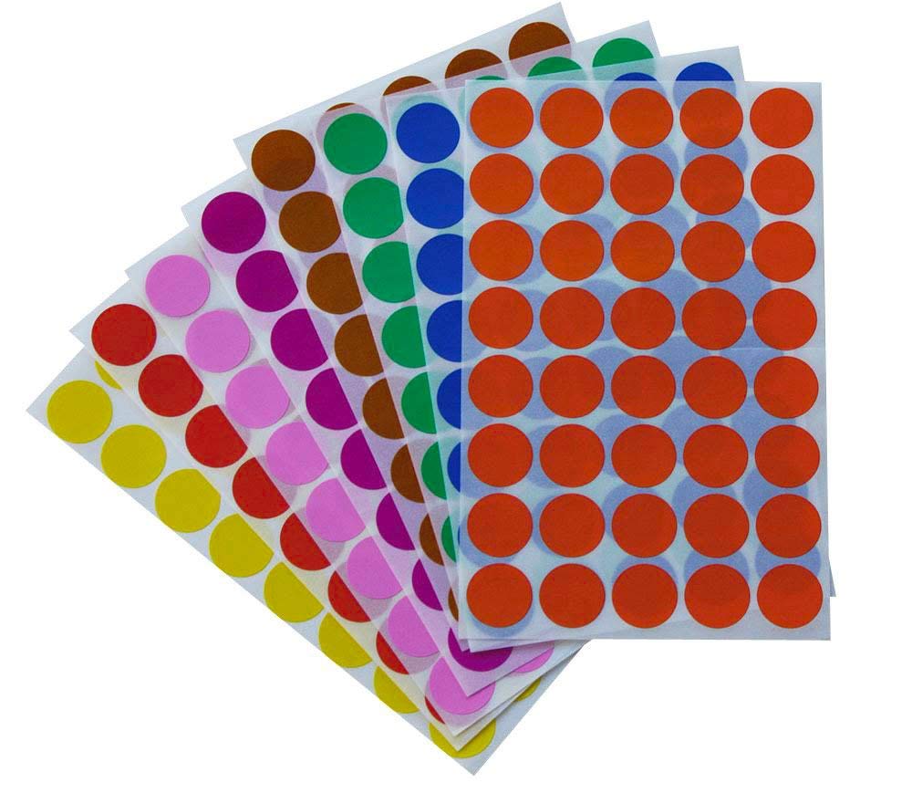 Royal Green Round Sticker Dots 3/4" inch Colored Labels in 8 Assorted Colors 19MM - 1280 Pack